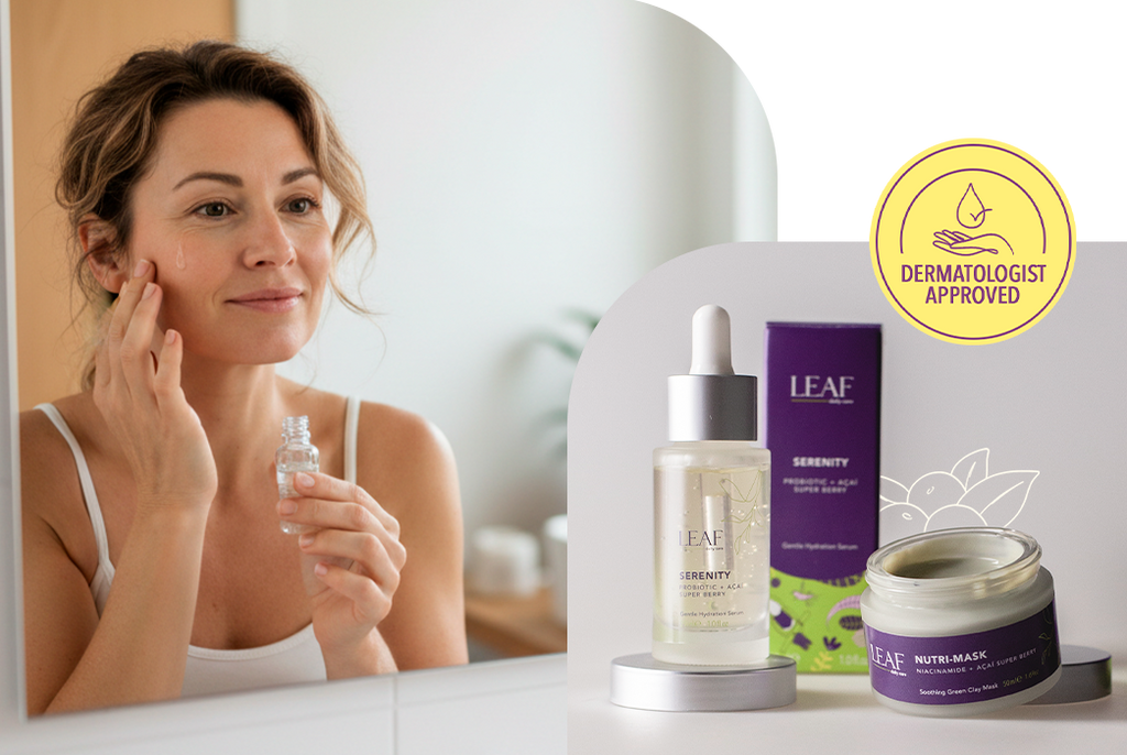 Our serum helps your skin microbiome. Gently soothes, hydrates, and minimizes irritation especially in sensitive skin.